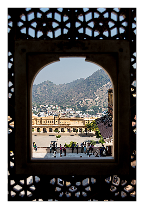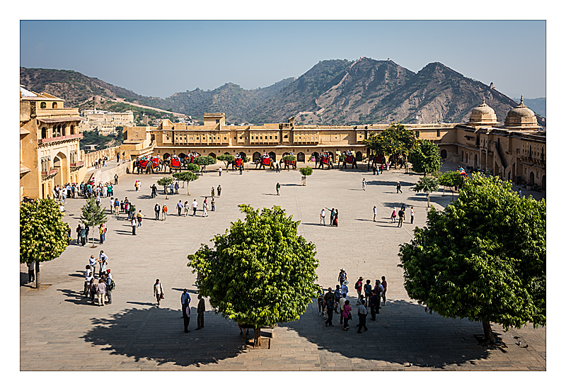 35 Amber Fort view of the main courtyard and hills in the background |