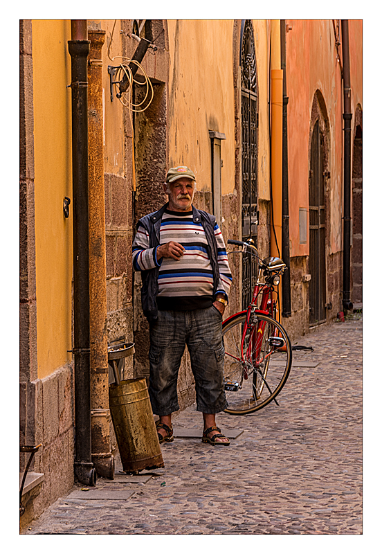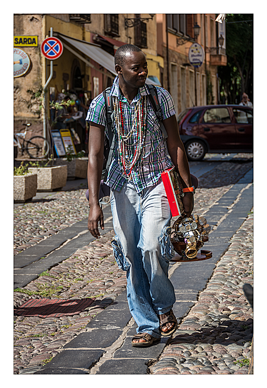 Man with his goods in Bosa