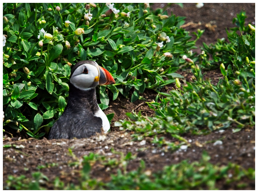 Puffin Looking out of His Home