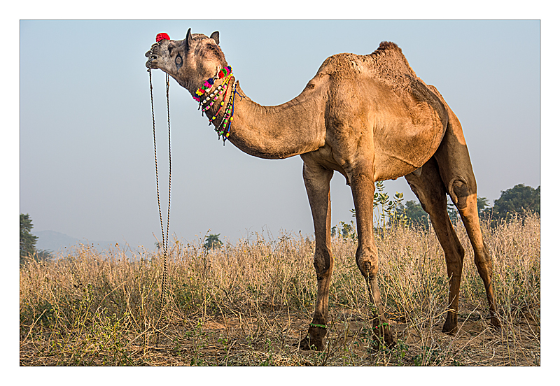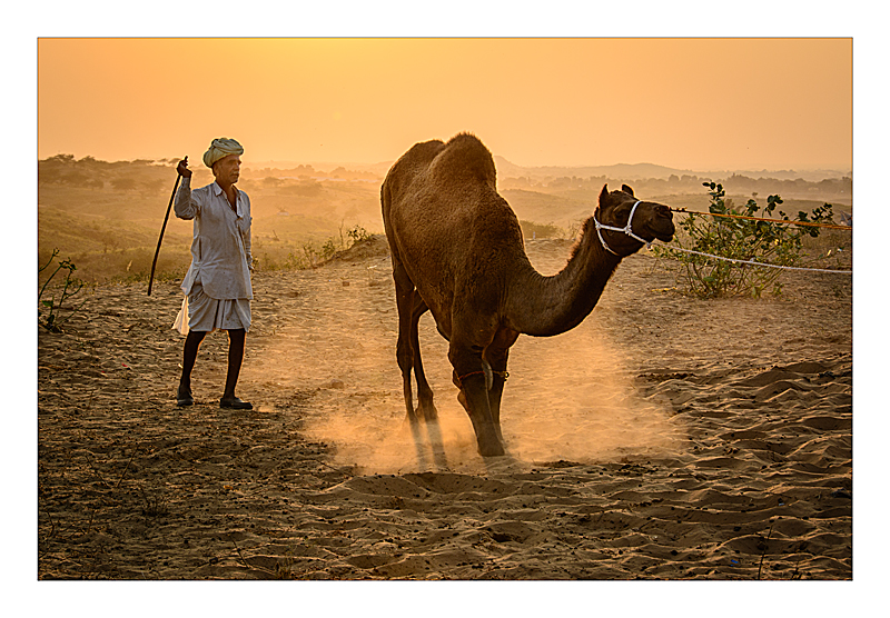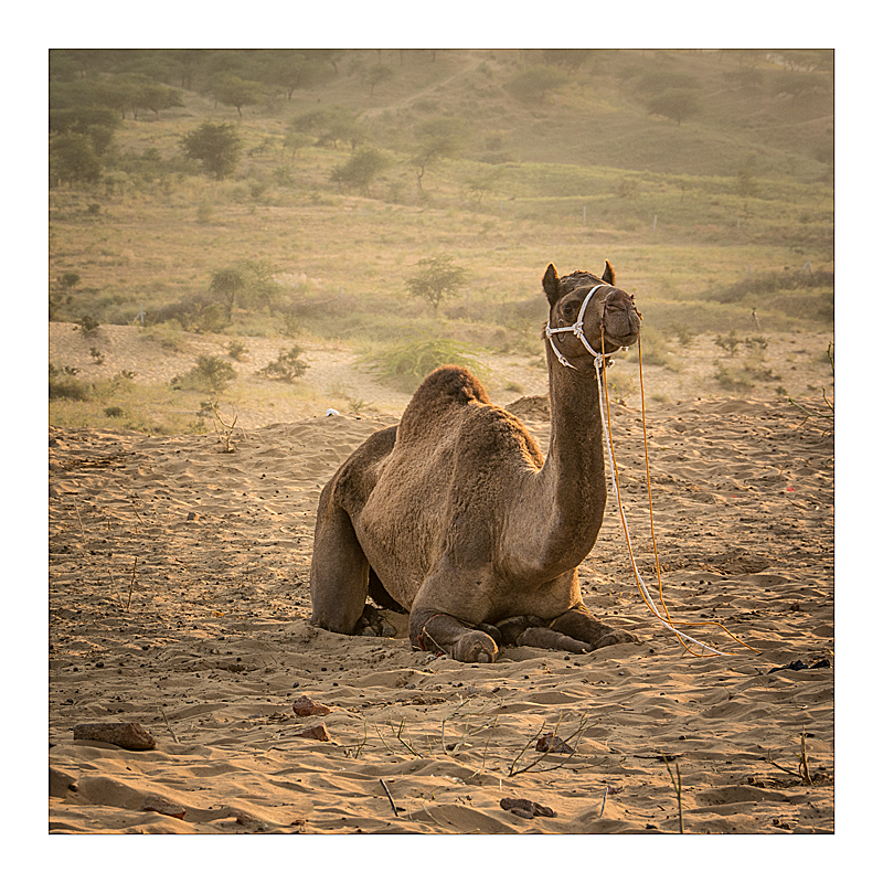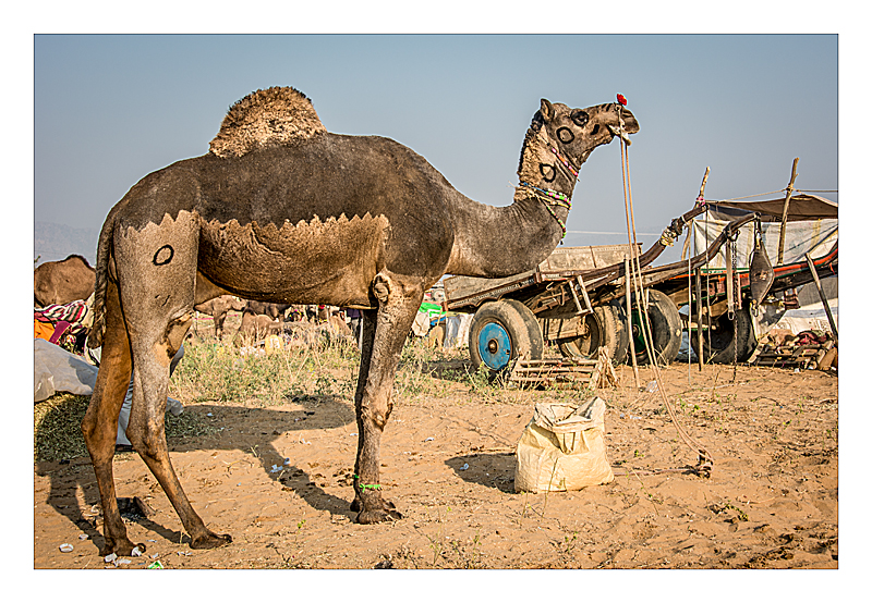 Evening at the Pushkar Camel Fair - the leg tied up so they can't run away