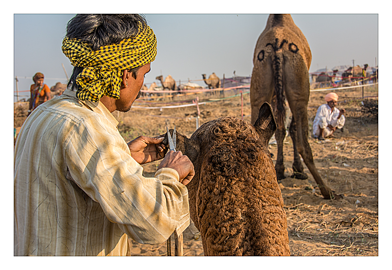 Pushkar Camel Fair - cutting designs in the coat of a camel