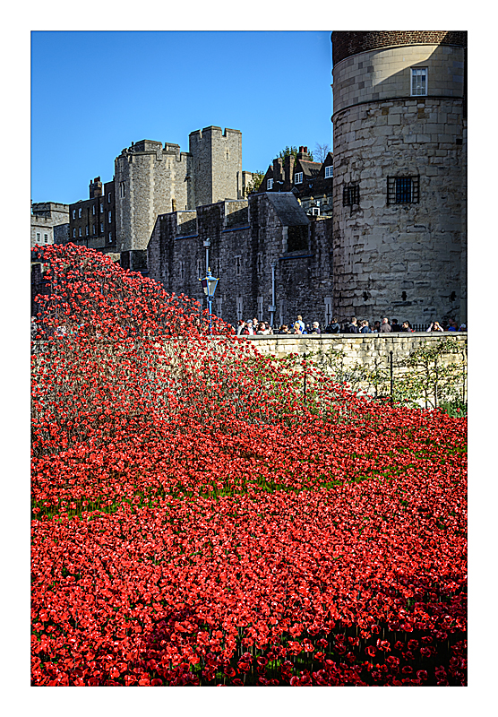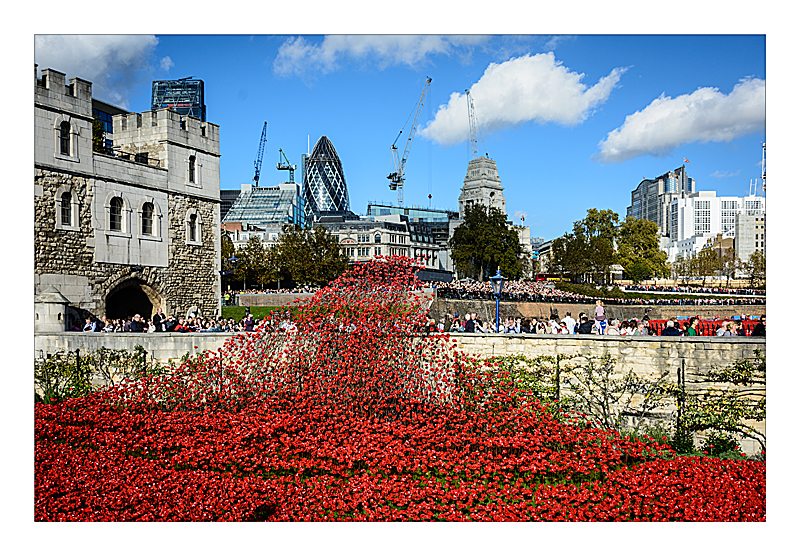 14 Blood Swept Lands and Seas of Red at the Tower of London, marking one hundred years since the first full day of Britain's involvement in the First World War. Created by ceramic artist Paul Cummins, with setting by stage designer Tom Piper, 888,246 ceramic poppies will progressively fill the Tower's famous moat over the summer. Each poppy represents a British military fatality during the war.