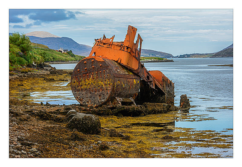 Abandoned boiler and views of Scalpay