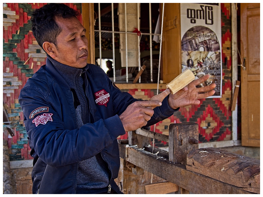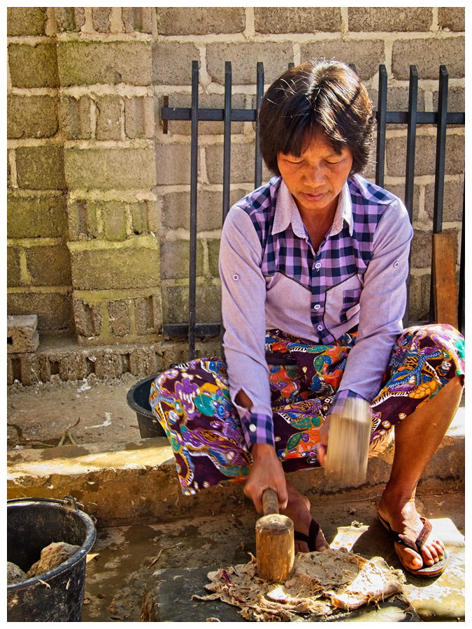 2 Bashing the Fibres of the Mulberry Tree at the Shan Umbrellas Workshop