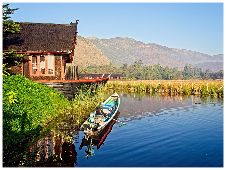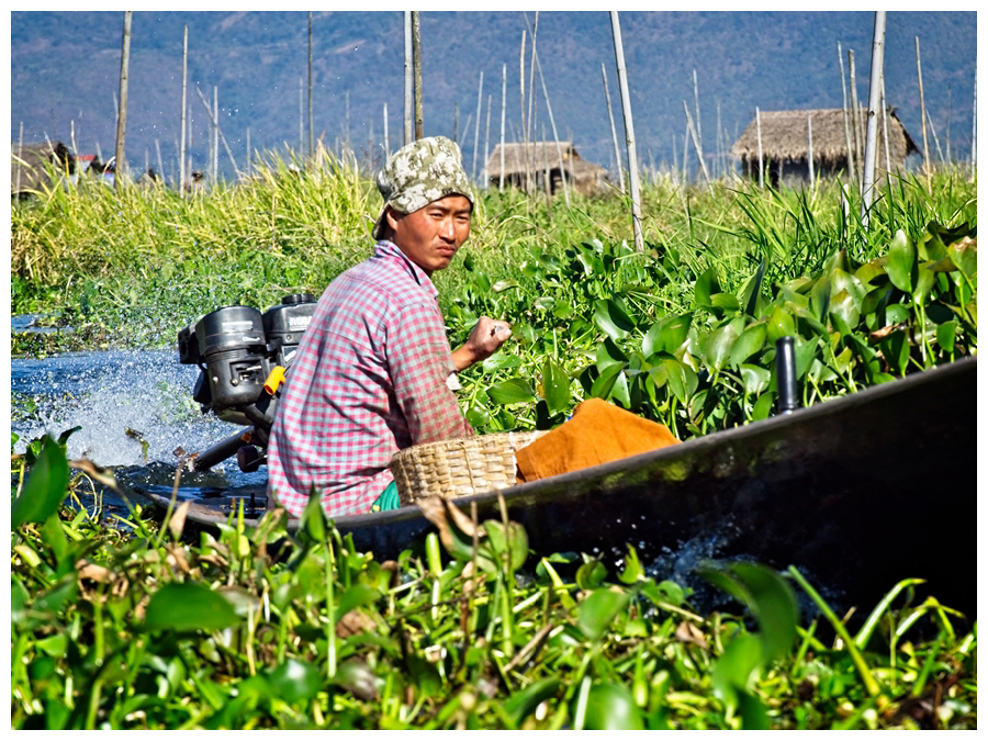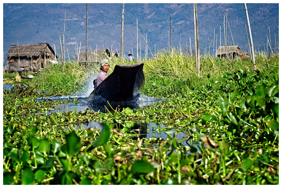 Inle Lake is the 2nd largest Lake in Myanmar and one of the highest at 2900 feet. In the dry Season the lake is around 7 ft deep up to 12 ft in the deepest parts. During the rainy season it can rise a further 5 ft. Most transportation is traditionally done by small boats or by slightly larger boats fitted with single cylinder diesel engines.