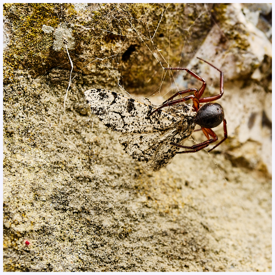 False Widow Spider Eating a Moth