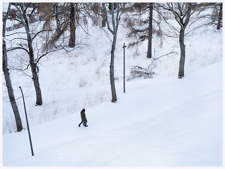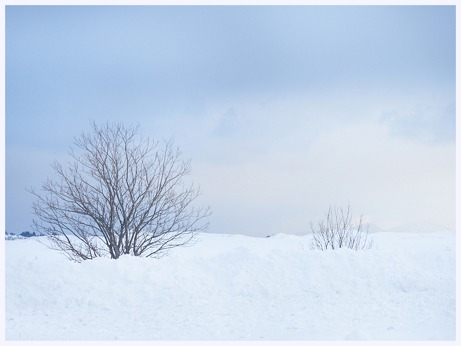 Stoping at a Cafe with a Snowy Garden